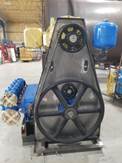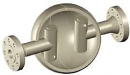 Upon exiting the feedwater pump, the water travels through a discharge pulsation dampener. This dampener works in the same manner as the inlet stabilizer but is built for high pressures and helps to maintain the structure of the piping after the pump rather than the pump itself. For very high-pressure systems, a pressure vessel dampener, also called a “zero maintenance” dampener, may be used instead. These are spherical dampeners that have no moving parts. This style of dampener causes the flow inside to spin which creates a smoothing effect that dampens surges from the amplified source. It can also partially rely on the compressibility of the fluid passing through it to absorb pressure fluctuations.