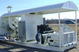 The fuel oil train includes all components between the burner and where the oil line attaches to the generator skid. However, depending on the type of oil and the climate, an oil heater and transfer pump may be located away from the generator. The oil heater decreases the viscosity of the oil allowing it to flow easier, and the transfer pump moves the oil from the heater to the oil inlet on the steam generator skid. The oil heater can be either fully electric or maybe both electric and steam operated. For an electric and steam heater, the heat will initially be supplied electrically and then will switch over to steam once the generator starts producing quality steam.
