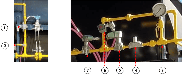 The fuel gas train includes all components between the burner and where the gas line attaches to the generator skid. All gas line piping should be painted yellow. Starting from where the gas line is attached; there will be a manual valve, typically a ball valve, which is used to shut off all gas to the gas line. After initial setup of the generator, this valve is typically only closed if maintenance needs to be done on the gas train.