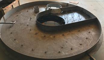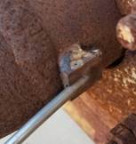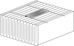 Fiber refractory is similar to house wall insulation and comes in either sheets or modules. Sheets of refractory come in rolls that are cut to length and installed over stud anchors to keep them in place. In order to retain the most heat, sheets are typically stacked and pressed together to obtain a certain density of material. The alternative to fiber sheets is premade modules. These modules are layers of fiber sheets that are folded over each other to produce a certain density of material. A different style of stud is installed for modules, which looks like the threaded part of a bolt welded to a square base. The center of each module has a hole with a metal bracket on one side. The bracket goes over the stud and then a nut is screwed onto the bolt to hold the module in place. An H-anchor, or other reinforcement anchor, can be installed between modules to help hold them together.