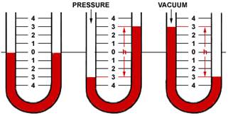 On a steam generator a u-tube manometer is used to measure the radiant section air pressure directly after the burner and is located on the burner end plate. A u-tube manometer is a simple measuring device that functions on the displacement of a fluid due to an applied force. By design, the manometer is a single glass tube in a “u” shape that is typically filled with mercury, oil, or water. The fluid is filled to the zero line on the measuring template located in between the two tube sides. As the pressure raises or drops, it displaces one side of the fluid depending on whether the pressure is positive or negative (vacuum).