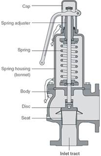 During normal operation, a fluid or gas passes by the safety valve and fills only the inlet tract. The spring is set to a certain resistance which correlates to a pressure rating. As the pressure of the fluid reaches the maximum pressure allowed by the spring tension, the spring will contract and raise the disc off the seat, which increases the spring force. This means that the pressure would have to continue to rise before any further lift can occur and for there to be any significant flow through the valve. The additional pressure required before the valve discharges at its rated capacity is called the overpressure.