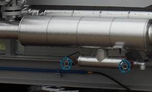 The bottom of the separator will lead to a pipe with two valves. The first valve (quality sample line valve) will have a compression connection with metal tubing that goes to the steam inlet of the quality sample condenser. The second valve (blowdown valve) will have a short connection pipe and is used for purging the separator from buildup before the sample condenser line is opened. This is necessary because buildup in the separator piping could clog the quality sample line due to its small diameter.