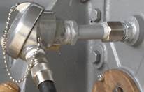 The goal for most generators is to maintain saturation and produce a quality of 80%, meaning that 80% of the water has turned to steam and 20% remains as a liquid. If the temperature were to rise without the pressure also rising, the water would pass the saturation point and fully vaporize to create superheated steam. Superheated steam is extremely dangerous for a steam generator because steam carries an immense amount of thermal energy. This energy is transferred to the interior wall of the pipes, but the excess water in saturated steam helps to insulate and carry part of this heat away from the pipe walls. If superheated steam is formed, then there is no water barrier to carry away the excess heat and it is heavily transferred to the pipe walls which can cause them to overheat and burst. To prevent the tubes from overheating in this situation, there is a radiant tube temperature sensor installed on the radiant piping just before it exits the radiant section. This thermocouple measures the skin temperature of the pipe using a special welded tip. The tip looks like a metal rectangle welded to the outside of the pipe wall that is attached to a long probe that extends outside the radiant wall. There may also be a thermocouple of the same style directly on the pipe after it exits the radiant chamber.