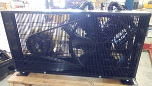 The air compressor supplies pressurized air for all pneumatic controls and instrumentation on the generator. The air compressor may be located on the generator skid or at a separate location in which case pressurized air piping will be installed and run to each component. In most cases the air compressor is located near the operator platform around the feedwater pump and motor. However, ACES generators locate the compressor underneath the convection section in order to free up space around the operator platform.
