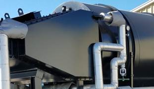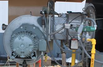 The air intake is located on the operator’s platform above the burner and is the inlet piping for the combustion blower. The air intake is typically covered with a cap to deter water and other objects from entering the combustion blower. The combustion blower and motor make up the back half of the burner assembly and is where the air intake attaches to. As the blower motor spins the combustion blower, ambient air is drawn in from the air intake and expelled through the burner where it mixes with fuel to promote a more ideal combustion environment. The amount of air flow is regulated by a VFD, damper, or both. The combination of these regulators increases the generator’s efficiency and can reduce the production of unwanted combustion byproducts like CO, NO, and NO2.