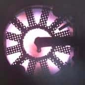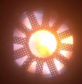 Air enters the combustion blower and travels through the body of the burner. At the end of the burner throat, where the burner bolts to the generator, there will be a metal ring. This is the fuel distribution ring. Fuel gas exits this ring through fuel ports where it meets the air and they collectively travel through a diffuser plate. These ports can have covers on them to limit the BTU input of the burner by limiting the amount of fuel that passes through. The diffuser plate is a circular assembly of metal arms with small holes in them that extend in front of the exit ports on the fuel distribution ring, and is used to promote mixing of the fuel and air.