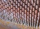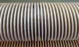Inside the convection box are rows of bare and finned tubes that are used to transfer heat from the hot gas to the water inside the tubes. Hot combustion gas exits the radiant section and flows over an initial few rows of bare tubes (shock tubes). These bare tubes shield the finned tubes from direct radiant heat to protect the fins from the high temperatures of the entering gas. Without these tubes, the fins can get too hot and a portion of the fin tips can burn off. Finned tubes come in two basic styles: solid and serrated. Solid tubes are one solid long helically wrapped piece of metal around a circular pipe while serrated tubes have the same helically wrapped metal but the metal is separated to produce rows of rectangular fins.