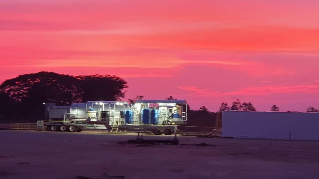 During a pristine sunset in Venezuela one can see this mobile steam generator at work.